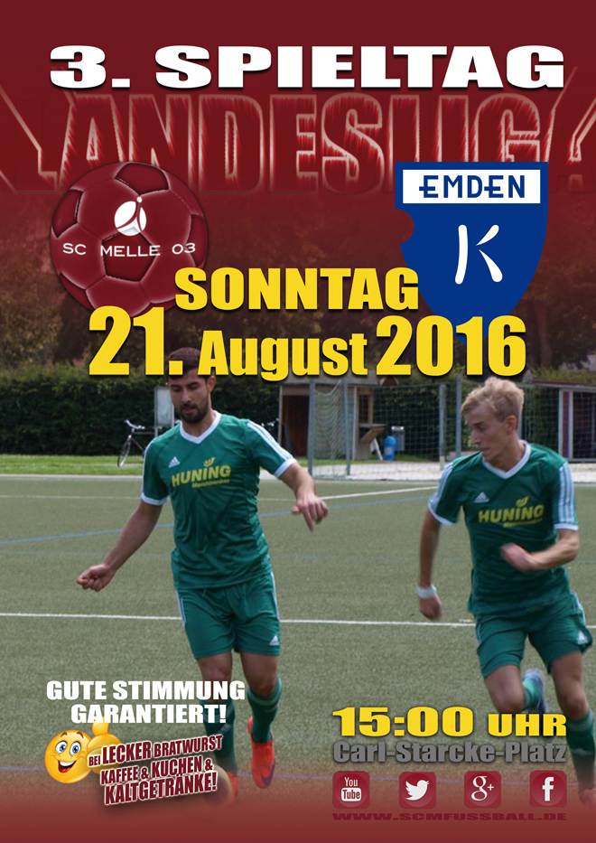 Am 3. Spieltag der Landesliga Weser-Ems empfangen wir am Sonntag um 15:00 Uhr den BSV Kickers Emden auf dem Carl-Starcke-Platz. Auch wenn die Tabelle nach dem 2. Spieltag noch keine große Aussagekraft hat, stellt sich mit Kickers Emden der aktuelle Tabellenführer in Melle vor.